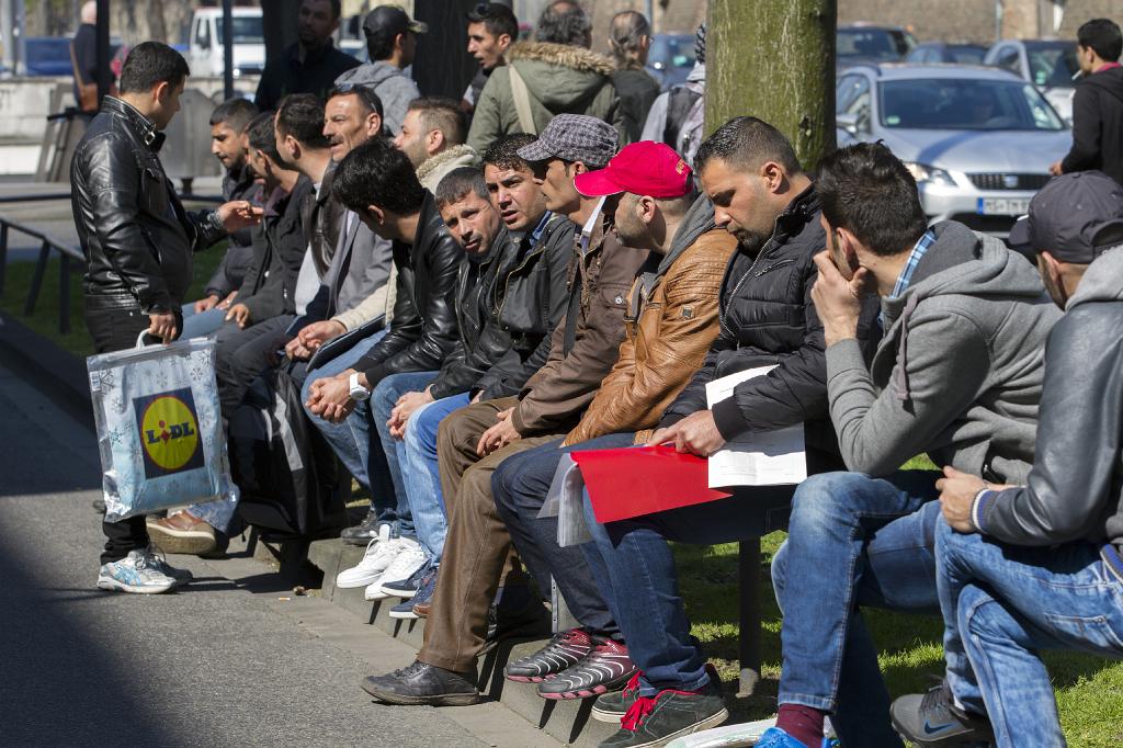 FLUECHTLINGE_VERWALTUNGSGERICHT_JS4153 ASYL- hauptsächlich Syrer und Iraker warten Stunden vor Verwaltungsgericht - waiting hours for a lot of papers and decisions in court for asylum matters , refugees most of them from Syria and Iraq |