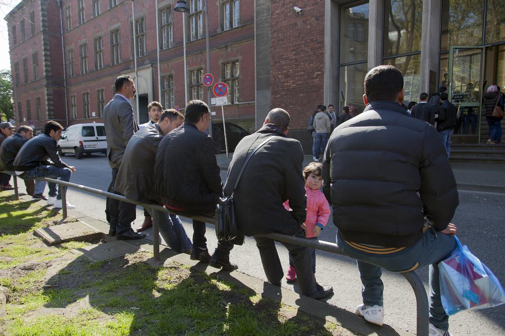 FLUECHTLINGE_VERWALTUNGSGERICHT_JS6117 ASYL- hauptsächlich Syrer und Iraker warten Stunden vor Verwaltungsgericht - waiting hours for a lot of papers and decisions in court for asylum matters , refugees most of them from Syria and Iraq |