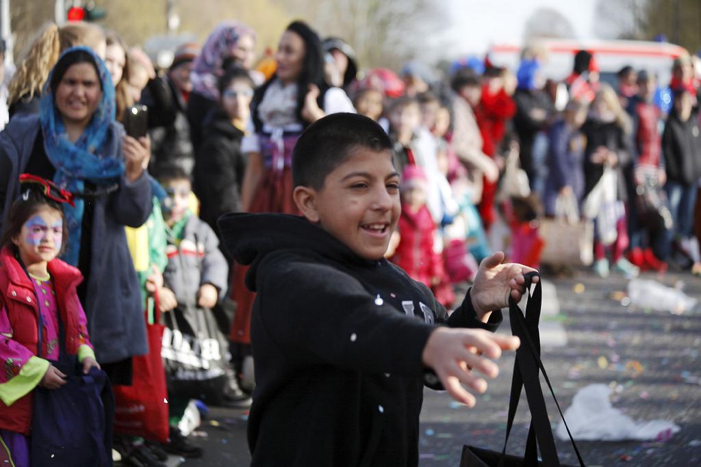 FLUECHTLINGSKINDER_KARNEVAL_JS7431 angekommen im rheinischen Karneval - enjoying carnival parade collecting sweets and flowers |