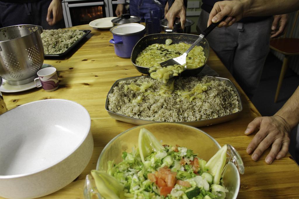 _MG_1737 young men from Syria and Ghana prepare traditional meal for meeting with village comunity |