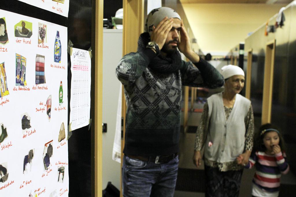 _MG_1808b in a former sportshall live about 50 people, basic text and visual information in several languages for the migrants |