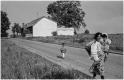 Migranten ROMA im Abbruchdorf Alt Garzweiler Tagebau Braunkohle  18./19.05.1993 Alt-Garzweiler Migranten hauptsaechlich aus Osteuropa, Roma, sind voruebergehend in dem fast verlassenen Dorf ALT GARZWEILER untergebracht, das wegen des Braunkohle Tagebaus abgerissen werden wird Garzweiler war bis 1980 ein 1200 Seelen Dorf, das dem Braunkohle Tagebau weichen musste. Am 19.5.1993 stehen noch etwa 10 z.T. abbruchreife Gebaeude weitverstreut in der flachen Landschaft, 3-5 alteingesessene Familien leben noch hoechstens 1 Jahr hier bevor sie wegziehen. Etwa 150 Fluechtlinge , zumeist Roma aus Ex-Jugoslawien und Rumaenien fristen hier ein tristes Dasein, weit abgelegen , Asylbewerber auf Abruf. Die alteingesessenen Deutschen lehnen einen Kontakt mit den Fremden ab. Copyright by JO SCHWARTZ / JO-SCHWARTZ .COM